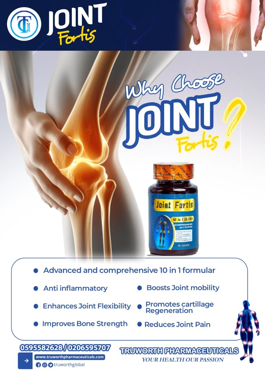 Joint Fortis by TRUWORTH PHARMACEUTICALS is a scientifically formulated supplement designed to target the root causes of joint pain and bone weakness. It offers comprehensive support for joint repair, mobility, and long-term bone health especially beneficial for individuals with arthritis, injury, or age-related degeneration